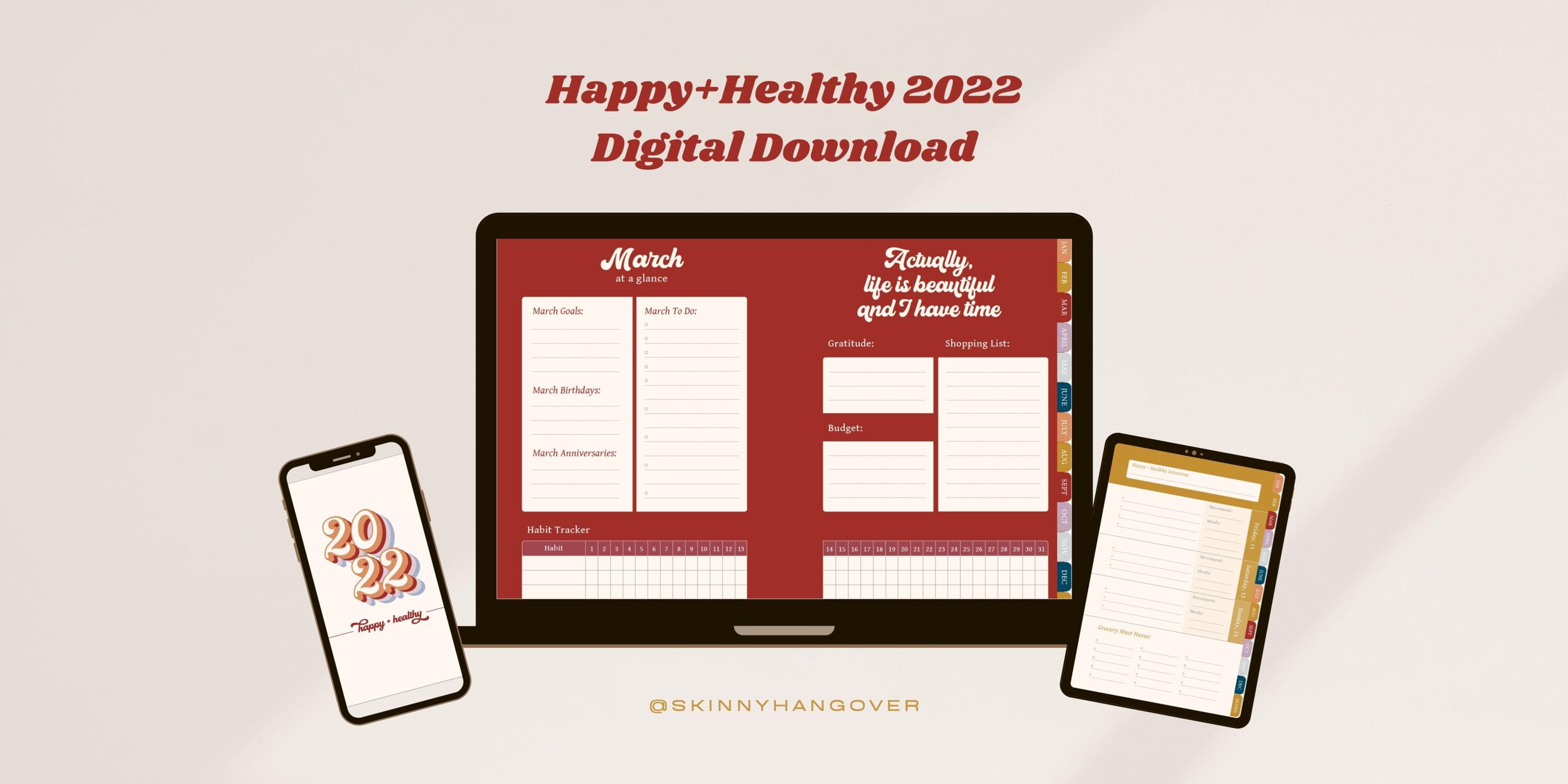 Similar to the analog 2022 planner, in this Digital version you will find wellness-specific features like the daily workout planner, the monthly habit tracker, and the weekly meal sections to help you build healthier habits & hit your 2022 goals.